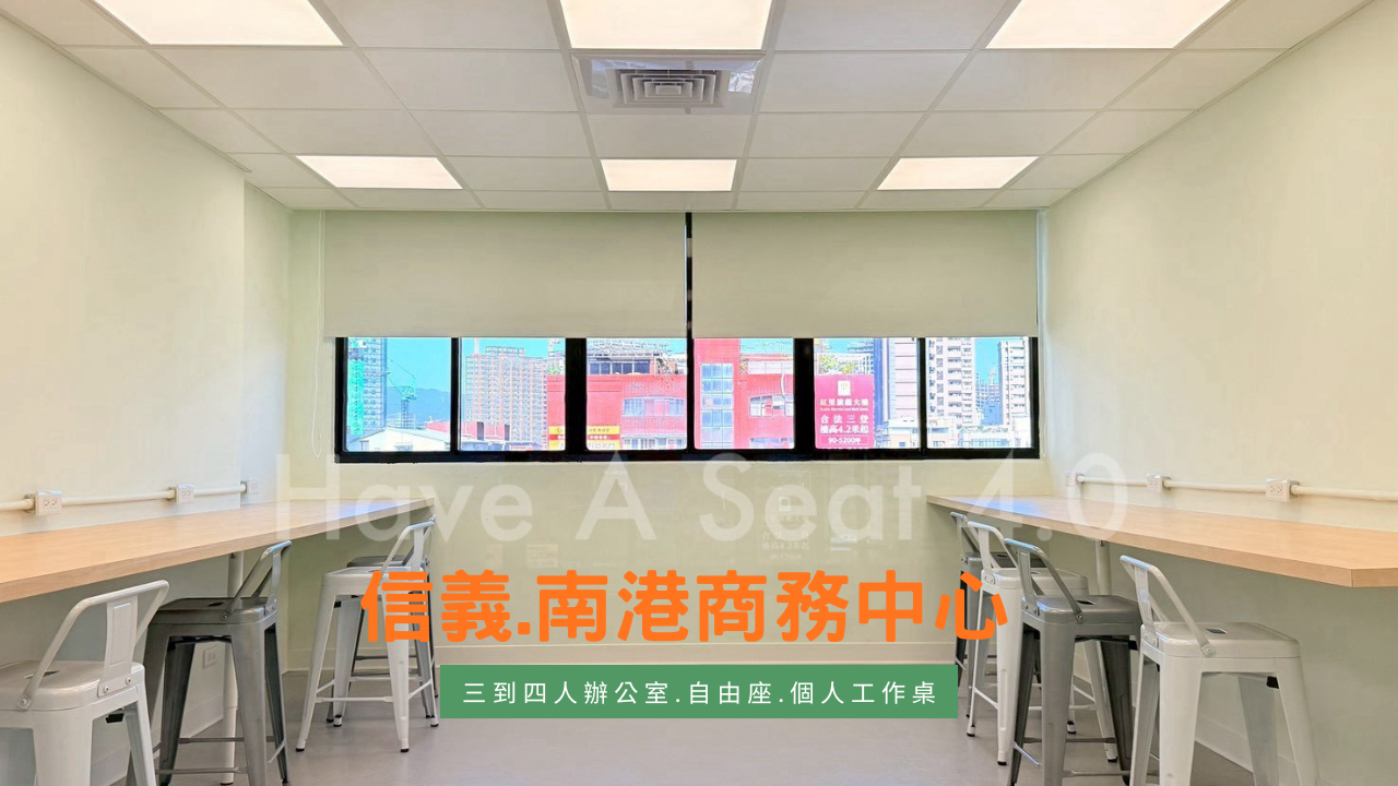 台北創業家們久等了!備受期待的 Have a Seat 4.0 南港館 正式登場! 我們延續了品牌的高 CP 值傳統,在南港核心地段打造了一個結合質感、採光與機能的微型辦公空間,是您事業起飛的最佳基地。